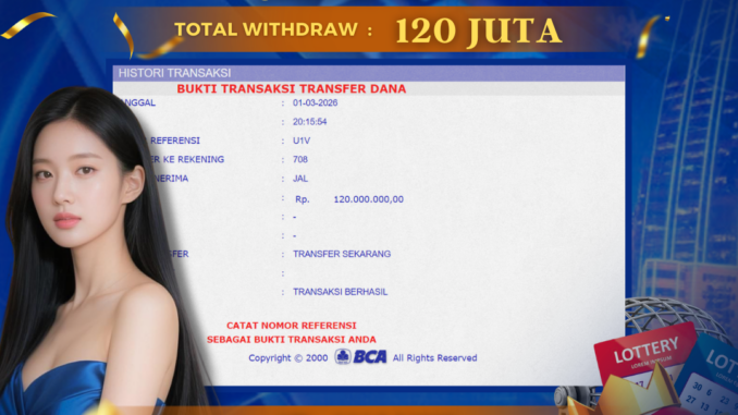 DEWATOGEL mengucapkan selamat kepada user id : WAN*** yang telah berhasil mendapatkan jackpot pada permainan TOGEL DI JAKARTA 4D. Kemenangan sebesar Rp 120.000.000,-. telah dibayarkan LUNAS oleh pihak dewatogel kepada pemilik user id setelah yang bersangkutan mengisi formulir withdraw. Proses pencairan dana berlangsung sangat cepat hanya dalam waktu 5-10 menit sudah berada dalam rekening pemilik user id. Bukti transfer yang dapat anda lihat adalah bukti SAH / VALID yang langsung di dapatkan melalui bukti transaksi dari Bank yang digunakan untuk pengiriman dana pada rekening pemilik user id. Terima kasih kami sampaikan kepada para pengguna setia DEWATOGEL yang telah menggunakan situs kami, sebagai Bandar Terpercaya yang pastinya membayar semua kemenangan member hingga lunas. Apakah DEWATOGEL PENIPU ? Reputasi “DEWATOGEL TERPERCAYA” sudah sangat melekat. puluhan hingga ratusan ribu pengguna setia DEWATOGEL tetap menggunakan situs terbesar dan terbaik di Indonesia ini. Hapus rasa was-was dan khawatir anda, kemenangan anda berapapun PASTI dibayarkan hingga lunas.