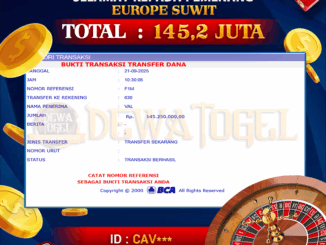 DEWATOGEL JACKPOT LIVE CASINO DI EUROPE SUWIT Rp 145.250.000,- LUNAS