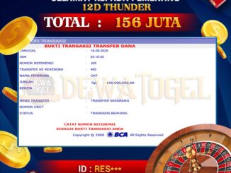 DEWATOGEL JACKPOT LIVE CASINO DI 12D THUNDER Rp 156.000.000,- LUNAS MEMBER DEWATOGEL MENERIMA PELUNASAN KEMENANGAN JACKPOT LIVE CASINO DI 12D THUNDER Rp 156.000.000,- LUNAS “DEWATOGEL […]