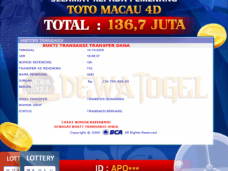 DEWATOGEL JACKPOT TOGEL DI TOTO MACAU 4D Rp 136.750.000,- LUNAS MEMBER DEWATOGEL MENERIMA PELUNASAN KEMENANGAN JACKPOT TOGEL DI TOTO MACAU 4D Rp 136.750.000,- LUNAS “DEWATOGEL […]